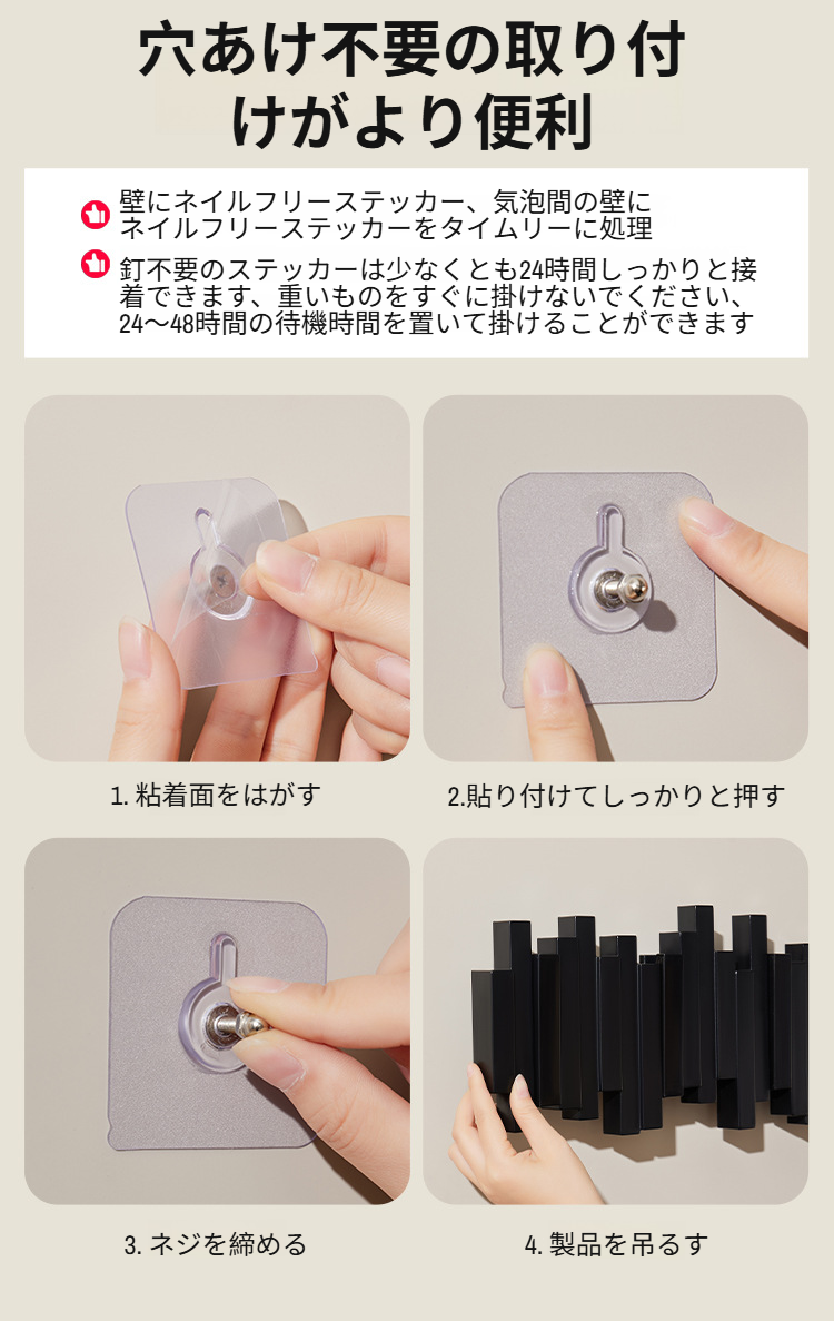 ピアノブロック列衣類フックパンチフリー粘着フック列キーフックバッグキーフック粘着フックフックラック