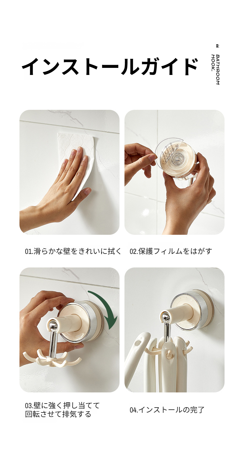 浴室タオルフックとしての吸盤6本爪ラック